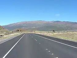 Route 200, known locally as Saddle Road, traverses the width of the Island of Hawaiʻi, from downtown Hilo to its junction with Hawaii Route 190 near Waimea. The road was once considered one of the most dangerous paved roads in the state, with many one-lane bridges and areas of marginally maintained pavement. Most of the road has now been repaved, and major parts have new re-alignments to modern standards. The highway is mostly one-lane in each direction, but there are two lanes on the uphill portions. The highway reaches a maximum elevation of 6,632 feet (2,021 m) and is subject to fog and low visibility. Many rental car companies used to prohibit use of their cars on Saddle Road, but now allow use of the road.[2][3] The highway experiences heavy use as it provides the shortest driving route from Hilo to Kailua-Kona and access to the slopes of Mauna Loa and the Mauna Kea Observatories.