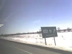 Highway 34 is short highway which today serves to connect the town of Hawkesbury with Highway 417. The 16.9-kilometre (11 mi) route ends at Main Street, near the Ottawa River in downtown Hawkesbury. Between these two points, with the exception of the town of Vankleek Hill, the highway traverses the rural Ottawa Valley, remaining straight in a southwest–northeast orientation except through Hawkesbury.[3] The majority of the land use surrounding the highway is composed of commercial shops in urban areas and agricultural in rural areas, though some small woodlots exist alongside the route. Two interchanges exist along the route: at the southern terminus with Highway 417 and with Prescott and Russell County Road 17 (former Highway 17).[4]