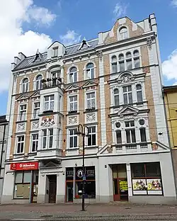 The anti-Polish organization Bund Deutscher Osten was very active in the city, it dealt with propaganda, indoctrination and espionage of the Polish community, as well as denouncing Poles to local authorities.[23] When, the Barbórka (traditional holiday of miners) church services were organized separately for Poles and Germans in 1936, the Polish service enjoyed a greater attendance,[24] however, due to Nazi oppression and propaganda, the attendance at Polish services in the 1930s gradually decreased, according to Bund Deutscher Osten.[25] Polish activists were increasingly persecuted since 1937.[15] People were urged to Germanise their names, Polish inscriptions were removed from tombstones.[23] Some Polish priests were expelled from the city, both before[26] and during World War II.[27] As a result of German persecution the Jewish community dropped from 1,154 people in 1933 to 551 in 1939, and its remainder was deported to concentration camps in 1942.[19] The town's synagogue, that had stood since 1872, was destroyed in the Kristallnacht pogroms of November 1938.[28]
