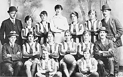 In 1903, Emmeline Pankhurst founded the Women's Social and Political Union (WSPU), a suffrage advocacy organisation.[94] While WSPU was the most visible suffrage group, it was only one of many, such as the Women's Freedom League and the National Union of Women's Suffrage Societies (NUWSS) led by Millicent Garrett Fawcett. In Wales the suffragists women were attacked as outsiders and were usually treated with rudeness and often violence when they demonstrated or spoke publicly. The idea of Welshness was by then highly masculine because of its identification with labouring in heavy industry and mining and with militant union action.[95]