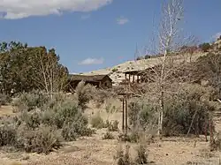 While on her lecture tour in Boise, Idaho, Ogden announced a revelation directing her to establish a religious colony dedicated to "the truth".[7] She returned to New Jersey with no idea of a location for the project, but was convinced it must be in a wilderness area far from city life. Ogden explained that she had received "a description and a mental picture of the place and knew it was on virgin soil, far removed from city life," as well as in the "intermountain country."[4] Through friends she learned of available land in San Juan County, Utah, and after visiting the area she made up her mind. She claimed that the location of their commune matched her vision.[4] A group of 21 disciples,[8] mostly from the Boise area, followed her to Dry Valley in southeastern Utah in September 1933.[6] Intending to start a collective farm, the group first tried to buy some irrigated ranch land on Indian Creek, but they could not pay the asking price. Ogden offered the owner membership in the colony and a guarantee of eternal life, but to no avail.[7] They settled on a tract of barren desert near Church Rock—the site, according to Ogden, of Christ's Second Coming—and began to build the Home of Truth.[8]