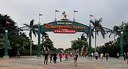 Hong Kong Disneyland (Chinese: 香港迪士尼樂園) (abbreviated HKDL;[1] also known as HK Disneyland or Disneyland Hong Kong) is a theme park located on reclaimed land in Penny's Bay, Lantau Island, Hong Kong. It opened to visitors on Monday, September 12, 2005, at 13:00 HKT, the second Disneyland in Asia to open after Tokyo Disneyland in 1983, with Shanghai Disneyland later opening in 2016.[2] Hong Kong Disneyland is located inside the Hong Kong Disneyland Resort and is owned jointly by Hong Kong International Theme Parks (52%) and the Walt Disney Company (48%). It is the most visited theme park in Hong Kong, followed by Ocean Park Hong Kong.[3] Disney attempted to avoid problems of cultural backlash by incorporating Chinese culture, customs, and traditions when designing and building the resort, including adherence to the rules of feng shui. Notably, a bend was put in a walkway near the Hong Kong Disneyland Resort entrance so good qi energy would not flow into the South China Sea.[4]