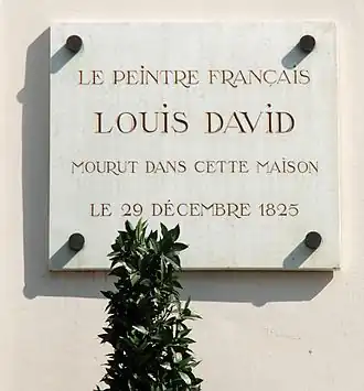 His death is commemorated by a plaque affixed to the facade of the house: "The French painter Louis David died in this house on December 29, 1825".
