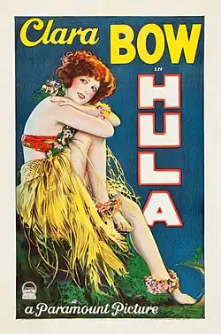 Hula is a 1927 American silent romantic comedy film directed by Victor Fleming, and based on the novel Hula, a Romance of Hawaii (1927) by Armine von Tempski. The film stars Clara Bow and was released by Paramount Pictures.[1] The film entered into the public domain on January 1, 2023, because regardless of the film itself's renewal status, the copyright of the book it was based on was renewed in 1954.[2]