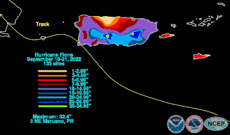 A map of rainfall associated with Hurricane Fiona in Puerto Rico