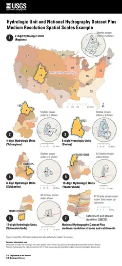 - ^ "Overview and History of Hydrologic Units and the Watershed Boundary Dataset (WBD)". Natural Resources Conservation Service. January 11, 2022. Archived from the original on July 24, 2011. Retrieved March 18, 2023.