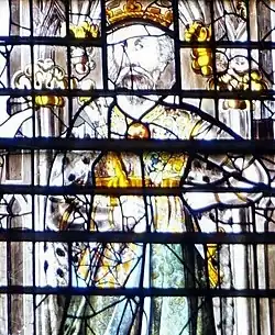 King Ine depicted in the Transfiguration Window of Wells Cathedral.