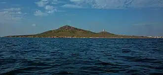 Isla Mayor (also called Isla del Barón) is a Spanish island located almost at the center of the Mar Menor, in the municipality of San Javier in the Region of Murcia. As its name indicates, it is the largest island both in that inland sea and in the entire Murcian region (93.8 hectares). It is an extinct volcanic cone, which gives the island its distinctive conical shape (104 meters in altitude) and roughly circular perimeter. The island is private property.[1] It takes the name Isla del Barón from the Barón de Benifayó, who built a Neo-Mudéjar-style palace on the island, known as "the baron’s house."