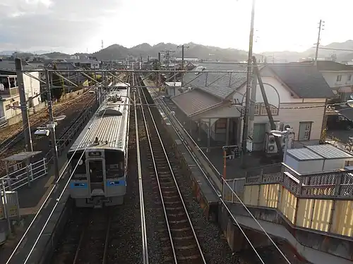 The station is served by the JR Shikoku Yosan Line and is located 187.0 km from the beginning of the line at Takamatsu.[3] Only Yosan Line local trains stop at the station and they only serve the sector between Iyo-Saijō and Matsuyama. Connections with other local or limited express trains are needed to travel further east or west along the line.[4]