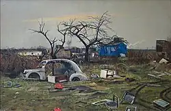 Although influenced at his beginnings by an expressionist manner like Lovis Corinth or Chaïm Soutine, his work turned quite quickly to an uncompromising realism. Willing to show the reality in the raw, he made himself the witness or the chronicler of the end times,[4] by documenting the condemned worlds by the evolution of society : the old beliefs, the social outcasts and the life in the fringe and the ravages from urbanization and industrialization. According to Le Monde art critic Philippe Dagen, Jürg Kreienbühl "could be seen as the first photorealist of the Parisian painting in the 1960s. He can also be seen as the predecessor of those who make their art a disillusioned social and architectural chronicle[5]".