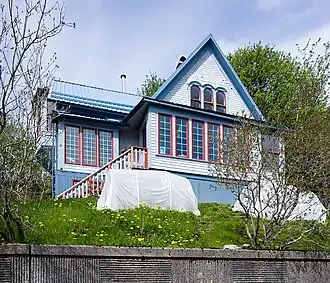 The J. M. Davis House is a historic house at 202 6th Street in Juneau, Alaska. This two-story wood-frame house was built in 1892, when Juneau was little more than a gold mining camp, and remains one of its most elegant homes of the period, as well as one of its oldest buildings. The builder, J. M. Davis, was a miner whose wife was a wealthy English artist. Their son, Trevor Davis, was a noted Alaskan landscape photographer; the house has also served as the official residence of the local US Coast Guard Admiral.[2]