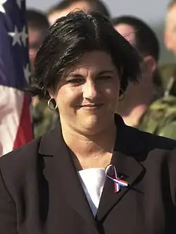 Jane Maria Swift (born February 24, 1965) is an American politician and nonprofit executive who served as the 69th lieutenant governor of Massachusetts from 1999 to 2003 and, concurrently, as acting governor from April 2001 to January 2003.[note 1] She was the first woman to perform the duties of governor of Massachusetts. At the time she became acting governor, Swift was 36 years old, making her the youngest female governor in U.S. history.[3]