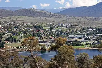 Originally situated on land that is now under Lake Jindabyne, the township was transferred to its present location in the 1960s due to the construction of Jindabyne Dam, on the Snowy River, as part of the Snowy Mountains Scheme. At the 2016 census, Jindabyne had a population of 2,629 people.[2] The town's name is derived from an Aboriginal word meaning "valley".[3]