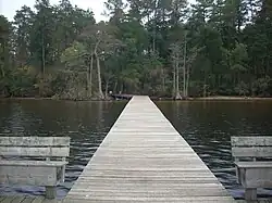 Jones Lake State Park is a North Carolina state park in Bladen County, North Carolina in the United States near Elizabethtown. It covers 2,208-acre (8.94 km2),[2] including the Carolina bay lakes of Jones Lake and Salters Lake. Jones Lake State Park is north of Elizabethtown on North Carolina Highway 242 in North Carolina's Coastal Plain region. The park offers year-round recreation, including fishing, swimming, boating, hiking, picnicking and environmental and historical education programs.