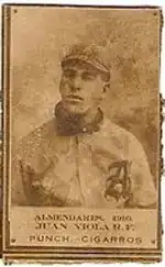 Juan Violá (1883–1919) was a Cuban professional baseball outfielder, third baseman and first baseman in the Cuban League, Negro leagues and minor leagues. He played from 1902 to 1915 with several ballclubs, including Almendares, the Habana club, the Long Branch Cubans, and the Jacksonville Jays. He was elected to the Cuban Baseball Hall of Fame in 1953.
