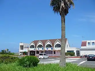 Kamigotō Airport (ICAO: RJDK) is a public aerodrome located on Kashiragashima Island (頭ヶ島), a smaller bridge-linked island just off the far east coast of Nakadorijima in the Gotō Islands, Nagasaki Prefecture, Japan. The site is about 8 km (5.0 mi) northeast[1] of Kamigotō town office, Shinkamigotō. The terminal was renovated in July 2015 and the airport remains active for emergency medical shuttles, but commercial passenger routes have been suspended for several years. Given the airport's lack of traffic and its unusually remote location, the runway has been used occasionally as a venue for 'dark sky' appreciation tours with tourists lying on the runway and staring at the cosmos above.[2]