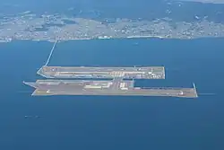 Initially, the airport was planned to be built near Kobe, but the city of Kobe refused the plan, so the airport was moved to a more southerly location on Osaka Bay.[18] There it could be open 24 hours per day, unlike its predecessor in the city.[19][20]