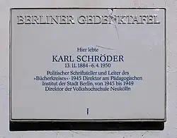 Karl Bernhard Fritz Schröder (13 November 1884 in Polzin – 6 April 1950 in West Berlin) was a communist politician and writer.
