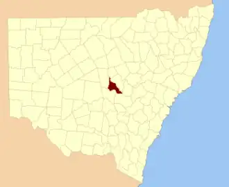 Kennedy County is one of the 141 cadastral divisions of New South Wales. It is located to the west of the Bogan River in the area around Tottenham and Tullamore.