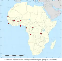 - The Afripedia Project set up kiwix servers in French-speaking universities, some of them with no Internet access, in 11 African countries.[37]