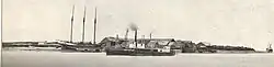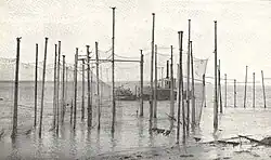 The schooner C.A. Thayer, carrying 28-foot (8.5 m) gillnet boats, bundles of staves for barrels, salt, and a crew of fishermen and cannery workers sailed from San Francisco to Alaska each April from 1912 through 1924. It was anchored at a fishery camp like Squaw Creek or Koggiung, where the fishermen worked their nets and the cannery workers (on the shore) packed the catch.