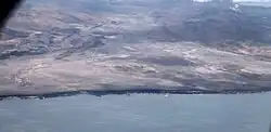 There were farms in the vicinity from the Middle Ages till 1945.[2] After the eruption known as the Krýsuvík fires in the middle of the 12th century, probably in 1151-1188, the main farm was transferred to a place under the mountain Bæjarfell. The name Krýsuvík was still used for the farm, though the buildings were at a distance of some kilometers from the sea.[2] The farm had a reputation for being very rich till the end of the 19th century. Being near the sea, the farm had additional income from fishing and hunting. Commerce was also done, because the farm was a junction of old trails from the north to the south coast.[2] Also the sulfur of the nearby geothermal areas was mined and exported.[3] However, Krýsuvík was too far away from upcoming industry and commerce and therefore abandoned in the middle of the 20th century.[2]