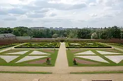 In the following centuries the mannerist garden arrangement was maintained. The symmetrical geometric parterres were enriched with rows of hornbeam with linden gazebos and dwarf fruit trees were planted (quince, cherries, apples).[19] There were also buildings: orangery, fighouse, two greenhouses, ice house and cold frames for the cultivation of seedling plants.[20]