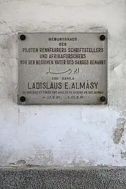 On the occasion of the 120th anniversary of the birth of László Almásy (August 2015), the Abu Ramla Sahara Expedition placed a commemorative plaque in Hungarian on main entrance gate of the castle of Bernstein (Borostyánkő), where Almásy was born in 1895.