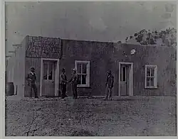 Sacramental records for the pueblo church at Abiquiu, Province of New Mexico, often referred to a settlement Nuestra Señora de Guadalupe de la Cueva. This hamlet probably served as the initial source of settlers that later formed the future village of La Cañada de La Madera approximately two miles due north of this site. At some point in time in the early 1900s, the name of the village of La Cueva was changed to Cañada de La Madera. The first US Post Office was established under the name of La Madera, rumored in order to accommodate postal authorities. The first postmaster, Elias Gallegos, was appointed on July 9, 1906. The post office was operated within the mercantile store that Elias Gallegos had previously built.