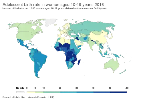 - ^ "Adolescent birth rate in women aged 10–19 years". Our World in Data. Retrieved February 15, 2020.