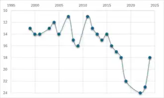 | 2023 | Finished in 23rd place (1st in Division IIA and promoted to Division IB) |