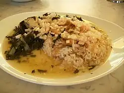 Vegetarian cuisine plays an important role in the cuisine of Lebanon. Being located in the Levant, vegetables and herbs (wild or cultivated) are abundant in the fertile landscape and serve as a main base of the cuisine.[73] For Lebanese Christians, including Catholic (Maronites and Melkites) and Orthodox, fasting from meat is practiced over the Lenten period (from midnight to noon) during Easter. Where abstention of meat is observed, the food is referred to as akl aateh (meaning food "cut" from the diet, such as meat or absent from meat). The particular food that is "cut" varies over different traditions.[74]