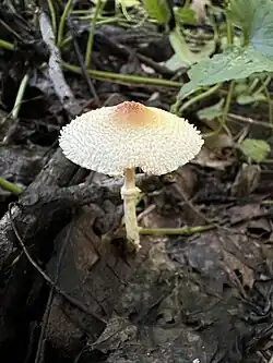 - ^ a b c d Birkebak JM, Vellinga EC, Franco-Molana AE, Wood MG, Matheny B (2009). "Lepiota maculans, an unusual mushroom rediscovered after 105 years". Southeastern Naturalist. 10 (2): 267–74. doi:10.1656/058.010.0207. S2CID 53668211.