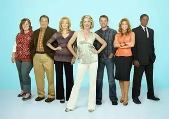 From left to right: Dena (Melissa McCarthy), Howard Newly (Kevin Dunn), Regina Newly (Jean Smart), Samantha Newly (Christina Applegate), Todd Deepler (Barry Watson), Andrea Belladonna (Jennifer Esposito), Frank (Tim Russ).