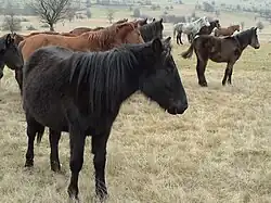 Mostly bay or black medium-sized cold-blooded horse.[5]
