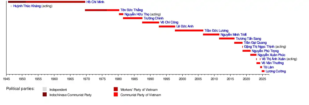 1. ^ "Chủ tịch nước | Lãnh đạo Đảng, Nhà nước" [President | State and party leaders]. Communist Party of Vietnam. Retrieved 18 May 2025.