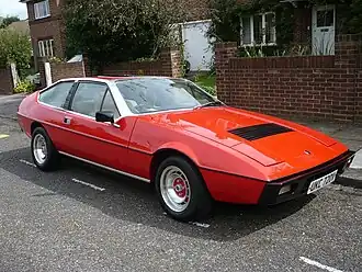 The Lotus Éclat (Type 76 and Type 84) is a sports car built from 1975 to 1982 by British automobile manufacturer Lotus Cars. It was based on the Elite but had a fastback body style which offered more practicality with storage in the boot, albeit with less headroom above the rear seats. The car was initially to be called the "Elite Coupe".[2] The lower half of the fibreglass bodywork was identical to that of the Elite.[3]