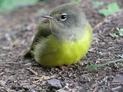 MacGillivray's warbler (Geothlypis tolmiei) is a species of New World warbler. These birds are sluggish and heavy warblers, preferring to spend most of their time on, or near the ground, except when singing.