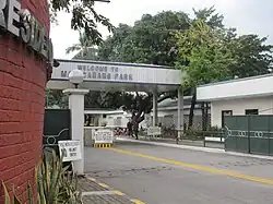 The park was created when the rice fields and grasslands of Pandacan on the south bank of the Pasig River were acquired on orders of President Quezon in 1936–1937. Intended as a recreational retreat, it contained three buildings: a recreation hall used for official entertaining, a community assembly hall for conferences with local government officials, and a rest house (which served as the official residence of presidents since Benigno Aquino III) directly opposite the palace across the Pasig River, which would serve as the venue for informal activities and social functions of the president and his or her family. The buildings, constructed by the Bureau of Public Works, were designed by Juan M. Arellano and Antonio Toledo. In addition to the buildings are a putting green, stables, and shell tennis courts.[28]