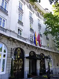 The Mandarin Oriental Ritz, Madrid is a historic five star Belle Époque hotel in Madrid, Spain at No. 5 in Retiro district, next to the Prado Museum. Opened in 1910, it is owned and managed by the Mandarin Oriental Hotel Group. The hotel's façade is a listed national monument.[1]