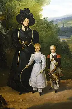 She followed the exiled royal family in 1830 to Holyrood Palace, and then to Prague, but in 1834, owing to differences with the head of the royal household, the Duc de Blacas, who thought her comparatively liberal views dangerous for the prince and princess, she received a brusque dismissal by Charles X. Her twin daughters, Joséphine (1796–1844) and Charlotte (1796–1818), married respectively Ferdinand de Chabot, prince de Leon and afterwards duc de Rohan, and François, comte de Bourbon-Busset. She herself wrote in her old age some naive memoirs, which throw an odd light on the pretensions of a governess of the children of France. She died in Paris in 1857.[1]