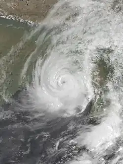 ![]() BOB 01 near peak intensity off the coast of Bangladesh | |