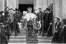 The wedding took place on 23 July 1900.[14] One of the officers in the procession was Dragutin Dimitrijević Apis. With strained relations with the outside world because of his unpopular marriage, King Alexander's foreign policy turned to Russia. The king had previously released the Radicals from prison who had been accused of backing the Ivandan assassination attempt on former King Milan.