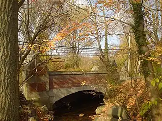 The Bridge in Radnor Township No. 2 is a brick and concrete arch bridge that spans Meadowbrook Run. It was built in 1905 and has a length of 75-foot-long (23 m). The bridge is on the National Register of Historic Places.[7]