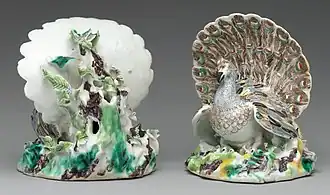 Mennecy-Villeroy porcelain (or Mennecy porcelain) is a French soft-paste porcelain from the manufactory established under the patronage of Louis-François-Anne de Neufville, duc de Villeroy (1695–1766) and—from 1748—housed in outbuildings ("les petites maisons") in the park of his château de Villeroy, and in the nearby village of Mennecy (Île-de-France).[1] The history of the factory remains somewhat unclear, but it is typically regarded as producing between about 1738 and 1765.[2]
