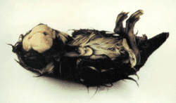 The many health effects of methylmercury has on wildlife include reproductive problems and reductions, enzyme and immune system problems, developmental issues, and genetic alterations.[13] These problems have had the greatest effects on waterfowl because of their high fish diets. Some of the waterfowl experiencing the most problems with methylmercury are the Great Egret, Diving Duck, Herons, and Loons. Research and scientific surveys have shown a dramatic reduction in Loon chicks and a change in juvenile Great Egrets with a direct correlation with high levels of methylmercury.[13] Ecosystems with both methylmercury and the element selenium can produce an even more toxic and potentially deadly mixture for wildlife.[13]