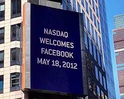 Billboard on the Thomson Reuters building welcomes Facebook to Nasdaq in 2012.