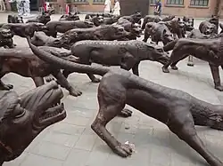 Hill also commissioned Max Patté to create a work for The Hills. The piece, which was unveiled on 12 May 2013, consists of five cast-iron horses, each of which is 2.6m high, 3m long and weighs 1.5 tonnes.[15][16] Patté modelled the sculptures in clay. The clay models were scanned and the data sent to a foundry in China. The foundry made full-scale polystyrene models which Patté then covered in a plasticine skin to add finishing details. The foundry then cast the horses in iron and they were shipped to New Zealand.[17][18]