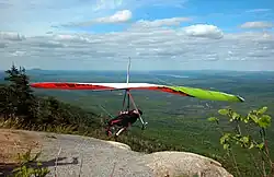 Although rare, favorable wind conditions allow many hang gliders and paragliders to leap from the summit of Mount St. Joseph. Flight activities are supervised by the gliding club in Thetford Mines. The hang gliding altitude record in Quebec was set from the mountain in 2003. An altitude of 3,749 m (12,300 ft) was achieved by Marco Levasseur.