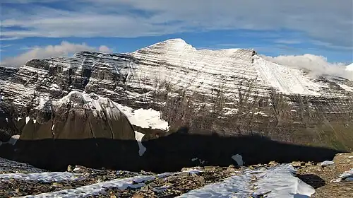 Like other mountains in Glacier National Park, it is composed of sedimentary rock laid down during the Precambrian to Jurassic periods. Formed in shallow seas, this sedimentary rock was initially uplifted beginning 170 million years ago when the Lewis Overthrust fault pushed an enormous slab of precambrian rocks 3 mi (4.8 km) thick, 50 miles (80 km) wide and 160 miles (260 km) long over younger rock of the cretaceous period.[5]